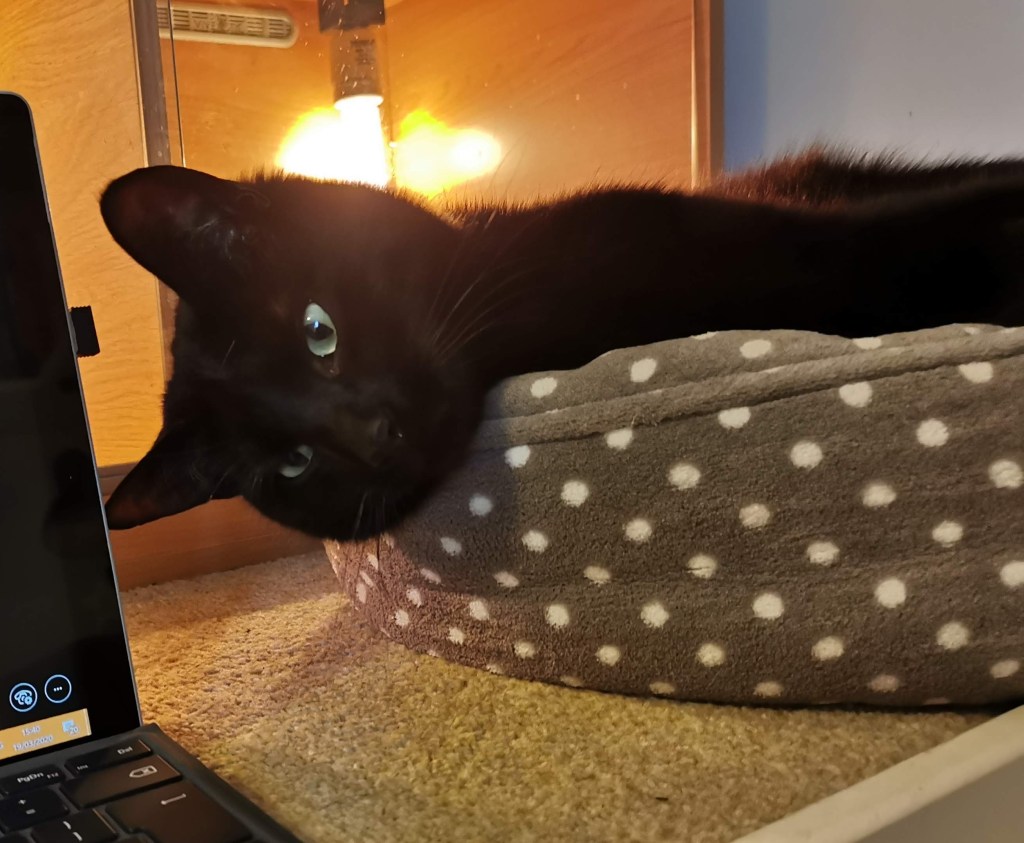 Soon we had bought our first house together, just before we moved my husband surprised me with Bagheera; an 18 week old black kitten. He was of course mad, but eventually all was harmonious, Bagheera would groom Heidi and Heidi would provide snuggles when Bagheera came in from the rain. Then came Mowgli…