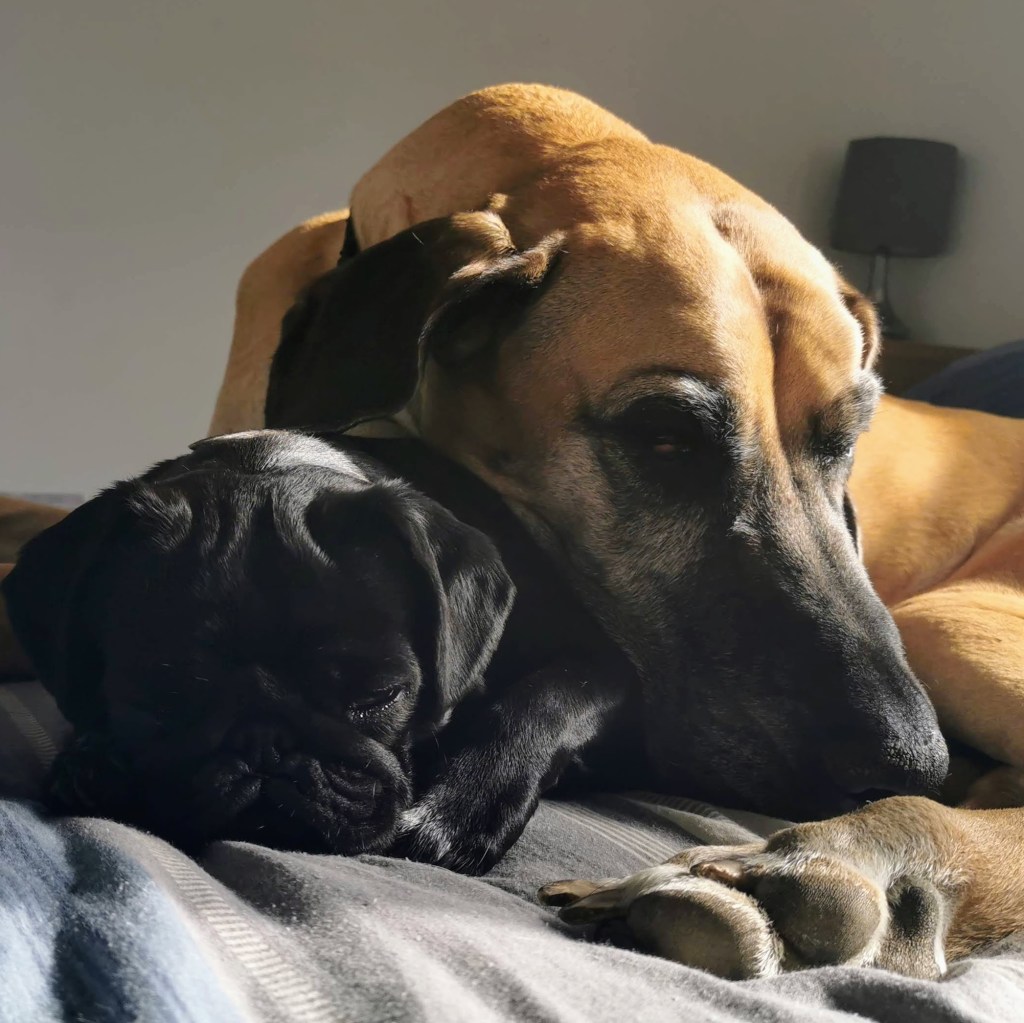 Heidi moved with us into our first home, a 1 bed flat… Ridiculous I know, but we loved our not so little family. Heidi cemented my love for animals, she was funny, loving, obedient, calm and kinda stupid. During her time, we looked after a Pug called Paddy for a while for a family friend and she took her under her wing. Paddy would sleep on Heidi’s back in the arm chair ❤️